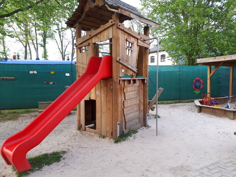 Unsere zweite Kita in Friesoythe eröffnete 2017. Das fußläufig erreichbare Gebäude zum Haupthaus in Friesoythe beherbergt 40 Kitakinder. Die Krippenkinder teilen sich den großzügigen Außenbereich mit den Nachbargruppen. Per Geheimgang "ab durch die Hecke" sind die Bereiche miteinander verbunden.